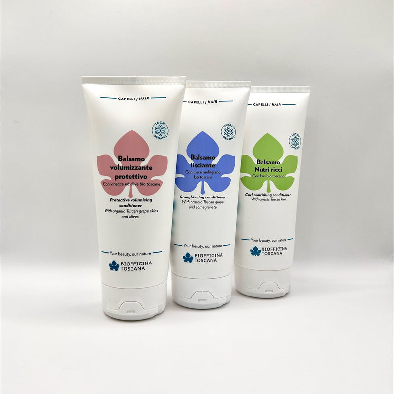 Ekologiskt balsam från Toscana för alla hårtyper. Patenterade enzymatiska ingredienser som djupnärer, återfuktar och ger glans – lättare kamning och mjukt hår utan tyngd.