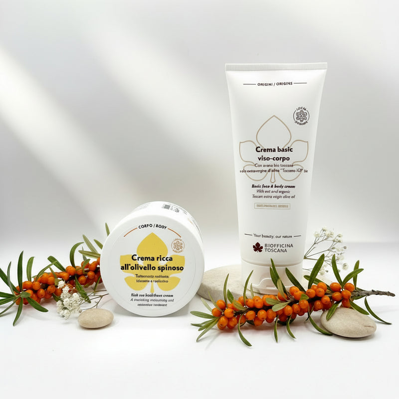 Ekologiska toskanska råvaror – mjukgörande och skyddande.