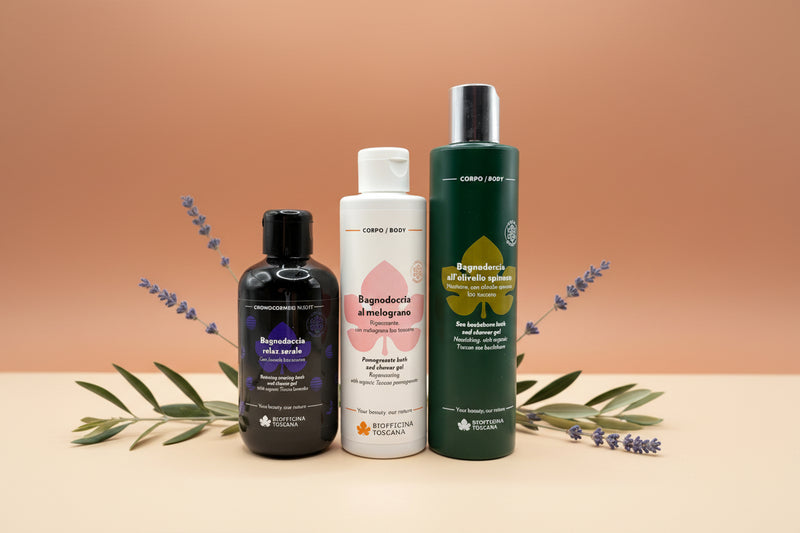 Skonsam dusch- och badvÄrd frÄn Toscana för alla hudtyper. NÀrande vÄrd under bad och dusch med ekologiska toskanska rÄvaror.