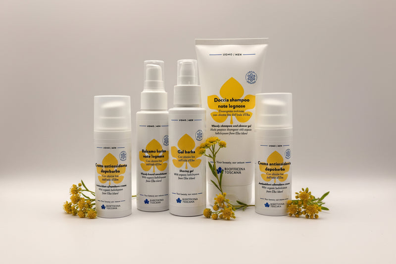 Alkoholfri hudvĂ„rd för mĂ€n frĂ„n Toscana. SkĂ€ggbalsam, ansiktskrĂ€mer och aftershave berikade med Helichrysum frĂ„n Elba, ekologisk olivolja och patenterade Uviox-OleoxÂź â utvecklad för mĂ€nnens specifika behov.